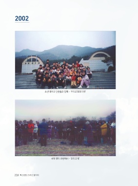 2002 2003-2004 성경 공부반 하천 미화 (4. 10) 소년 레지오 단원들과 함께 - ‘우리교회의 미래’ 본당 성지순례 한티 (10월) 새해 맞이 산상미사 - ‘안민고개’ 성탄 성야 미사 228 덕산성당 25주년 발자취 제6부. 사진으로 보는 본당 25년사 229