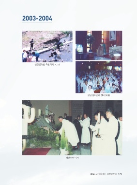 2002 2003-2004 성경 공부반 하천 미화 (4. 10) 소년 레지오 단원들과 함께 - ‘우리교회의 미래’ 본당 성지순례 한티 (10월) 새해 맞이 산상미사 - ‘안민고개’ 성탄 성야 미사 228 덕산성당 25주년 발자취 제6부. 사진으로 보는 본당 25년사 229