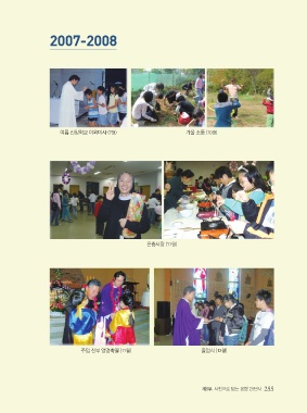 2004-2006 2007-2008 여름 신앙학교 야외미사 (7월) 가을 소풍 (10월) 첫 영성체 - 김순곤 비오 신부 (2004. 6. 13) 은총시장 (11월) 주임 신부 영명축일 (2006) 주임 신부 영명축일 (11월) 졸업식 (12월) 여름 신앙학교 - 남해 (2006) 254 덕산성당 25주년 발자취 제6부. 사진으로 보는 본당 25년사 255